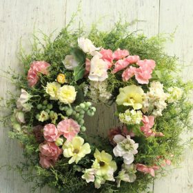 「暮らしの中のフラワーアレンジ」をテーマに、2時間のレッスンでワンランクアップな作品を制作します。楽しみながらも素敵に見えるテクニックが学べる内容です。